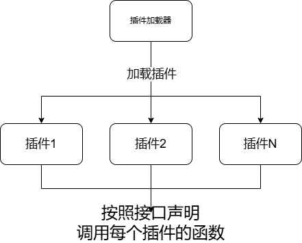一般插件系统分为三个部分: 接口、插件、插件加载器 。插件按照接口编写程序处理数据, 插件加载器加载插件并按照接口说明调用函数。